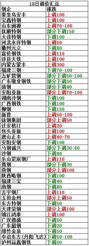 5月18日天津榮鋼部分上調(diào)100:鋼坯頭,圓鋼頭,火車輪3730,法蘭片3700,弓子板3690,優(yōu)質(zhì)一級3730,重a停收,特級破碎料3750,剪切料3150,鐵銷3180,鋼板料一級3730,軋廢3650,鋼筋切粒4030,不含稅