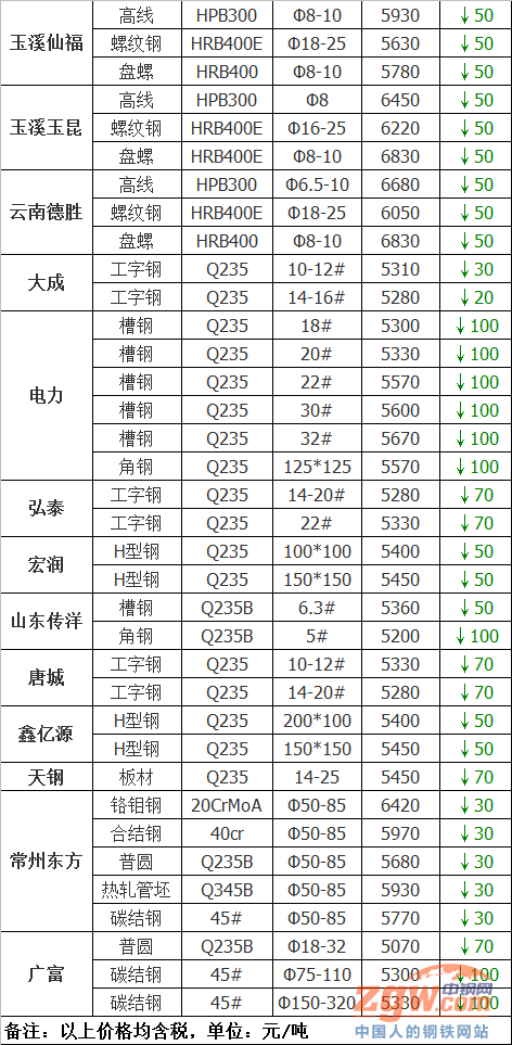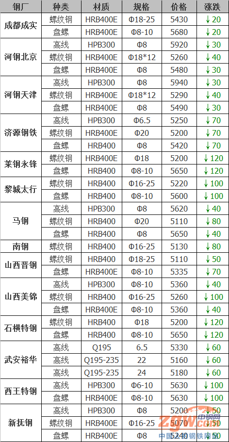 2021年6月8日鋼廠調(diào)價通知:調(diào)價:全跌!28家鋼廠齊齊降價!最多下調(diào)120!