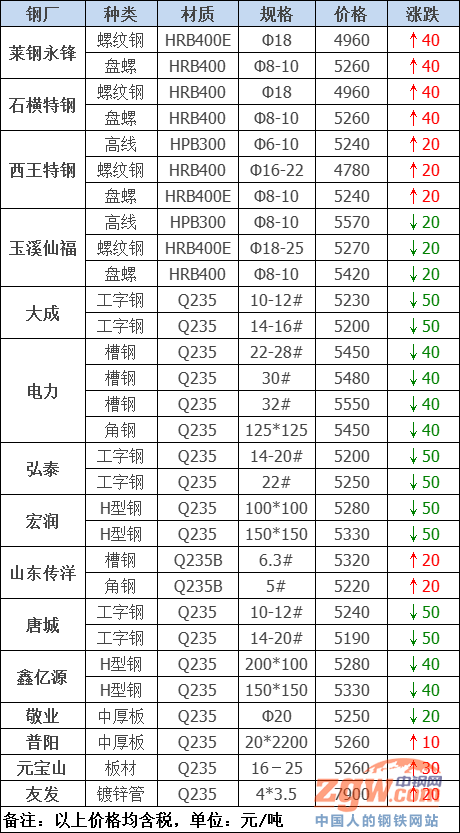 2021年7月5日鋼廠調(diào)價(jià)通知::調(diào)價(jià):漲40!跌50!25家鋼廠調(diào)價(jià)來了!