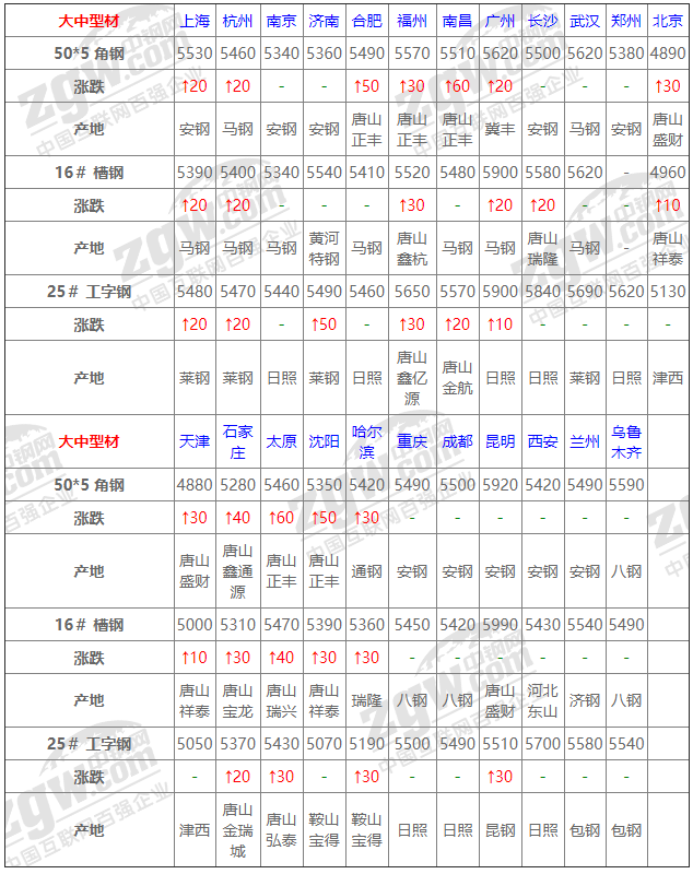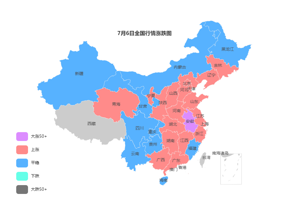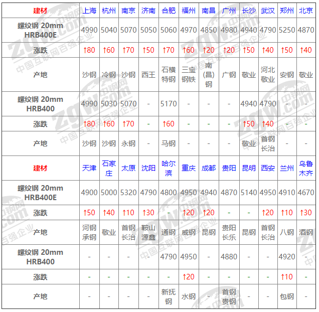 7月6日鋼鐵價(jià)格漲跌圖:主流上漲