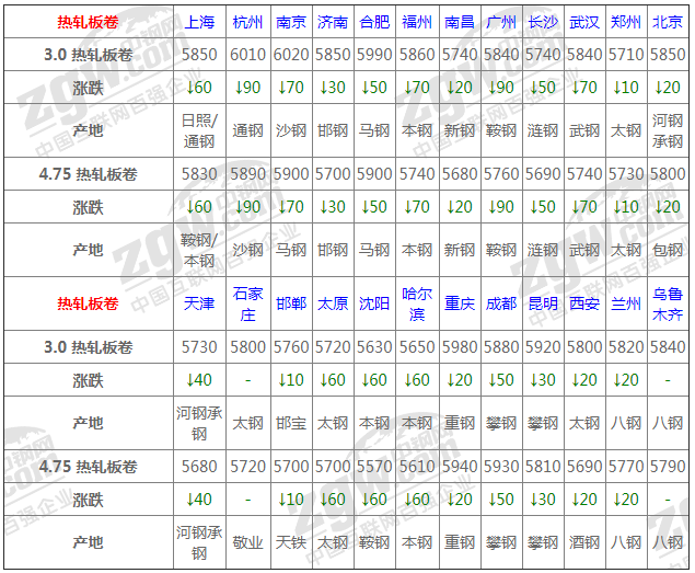 今全國熱卷漲下行為主,幅度10-90,期卷震蕩弱行,大幅下挫現(xiàn)貨市場心態(tài),商戶低價走貨為主,然市場交投氛圍偏空,整體出貨寥寥;