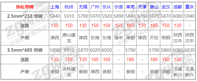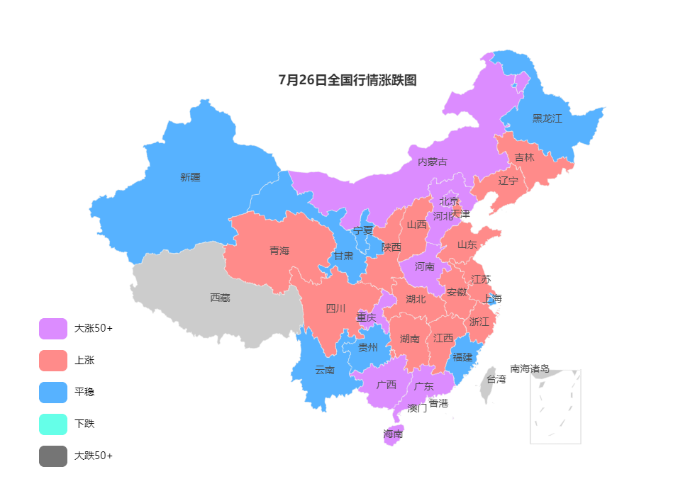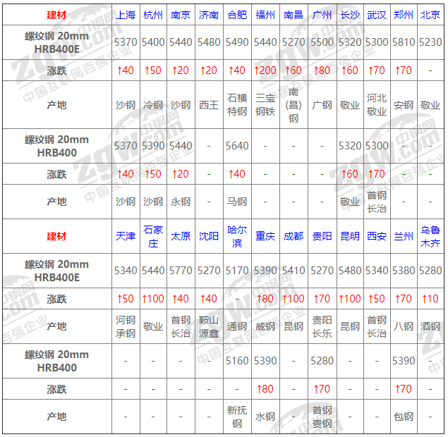 7月26日鋼鐵價(jià)格漲跌圖:主流上漲
