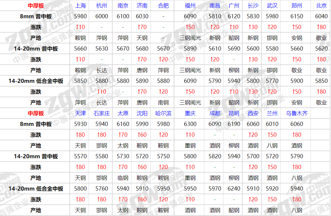 今全國(guó)中板整體偏強(qiáng),上調(diào)幅度10-80左右,期螺走勢(shì)向好支撐現(xiàn)貨市場(chǎng)心態(tài),但需求拿貨顯觀望,漲后成交一般,高位價(jià)格承壓;