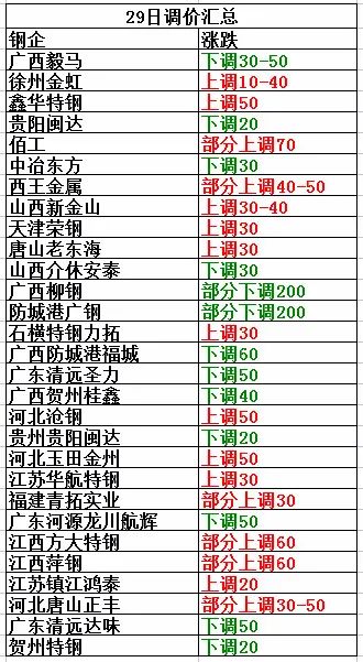 7月29日防城港廣鋼部分下調(diào)200:配重一類3740,配重2類3640,沖片一類3690,沖片二類3750,沖片三類3730,沖片四類3730,壓塊一類3740,壓塊二類3500,剪切一類3630,剪切二類3610,剪切三類3590,剪切四類3420,加工大料1類3000,加工大料2類2900,特優(yōu)精料2130,特級(jí)1260,含稅。