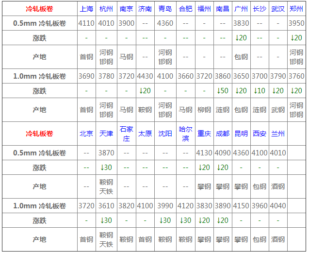 4月16日冷軋板卷價格:穩(wěn)中整理;