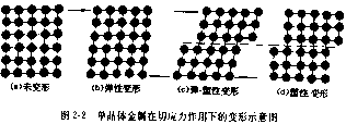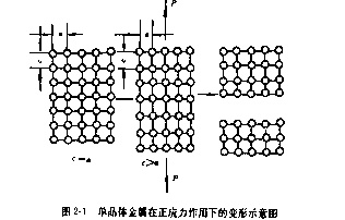 第4章 金屬材料的變形與再結(jié)晶 金屬材料在承受外力時,會產(chǎn)生一定的變形,隨著外力的增加,其變形將由彈性變形轉(zhuǎn)變?yōu)樗苄宰冃危敝翑嗔。金屬材料的變形特性在工程技術(shù)上十分重要, (1)由于鑄態(tài)金屬中往往具有晶粒粗大不均勻、組織不致密及雜質(zhì)偏析等缺陷,故工業(yè)上的金屬材料大多要在澆注后經(jīng)過壓力加工再予使用。 (2)把材料制作成所要求的形狀。 因為通過壓力加工時的塑性變形,金屬的組織也會發(fā)生很大的變化,可使某些性能如強度等得到顯著的提高。但在塑性變形的同時,也會給金屬的組織和性能帶來某些不利的影響,因此在壓力加工之后或在其加工的過程中,還應經(jīng)常對金屬進行加熱,使其發(fā)生回復與再結(jié)晶,以消除不利的影響。 工程上實際材料均為多晶體組織,為了更好地了解多晶體材料的變形,首先了解單晶體的變形特性。 4.1. 單晶體金屬變 4.1.1. 單晶體金屬彈性變形 單晶體金屬材料在正應力作用下變形過程,圖(2-1)