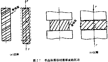 特點: (1) 可逆性,去除外力后,變形消失。 (2) 變形量小,<1%。 (3) 應變與應力成正比。 4.1.2. 單晶體金屬塑性變形 單晶體塑性變形有“滑移”和“孿生”等不同方式,大多數(shù)情況以滑移方式發(fā)生。 正應力只能引起晶格的彈性伸長,或進一步把晶體拉斷 切應力可使晶格在發(fā)生彈性歪扭之后,進一步造成滑移。通過大量的晶面滑移,最終使試樣拉長變細。 滑移:晶體的一部分相對于另一部分沿一定晶面發(fā)生相對的滑動。 滑移變形要點: (1) 滑移只能在切應力的作用下發(fā)生 (2) 滑移常沿晶體中原子密度最大的晶面和晶向發(fā)生。 這是因為只有在最密晶面(滑移面)之間的面間距及最密晶向(滑移方向)之間的原子間距才最大,因而原子結(jié)合力最弱,所以在最小的切應力下使能引起它們之間的相對滑動。 滑移系:滑移面數(shù)與滑移方向數(shù)的乘積;葡翟酱螅饘倩频目赡苄栽酱,即金屬塑性越好。