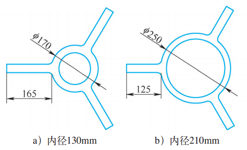 因此,決定中心環(huán)內(nèi)徑加大到210mm,壁厚仍為20mm,如圖5b所示。