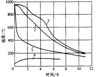 空冷或鼓風(fēng)冷的冷卻能力比水冷、油冷小得多,故在一定程度內(nèi)可避免鍛件內(nèi)部缺陷的擴(kuò)大,但空冷時(shí)鍛件的性能潛力不能充分發(fā)揮。圖12 、圖13 是大鍛件的空冷曲線。