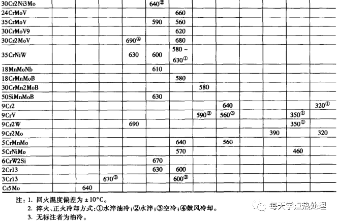 ▼表4 各種大鍛件用鋼的硬度與回火溫度的關(guān)系