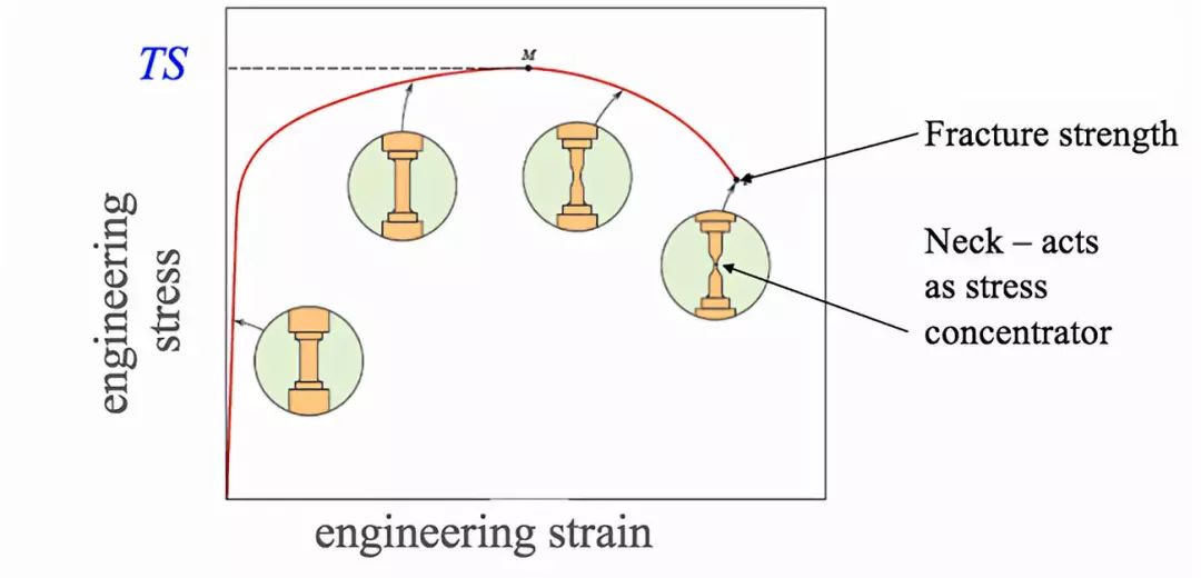 在拉伸曲線上,即工程應(yīng)變-工程應(yīng)變曲線上最大工程應(yīng)力稱為極限拉應(yīng)力,也就是抗拉強度。