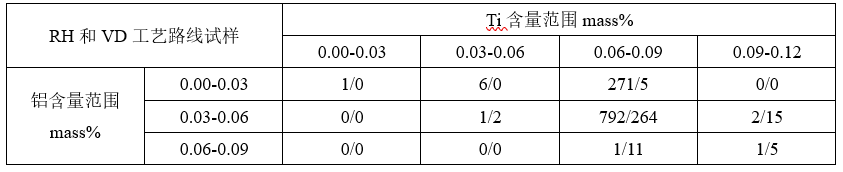 7  RHVD路徑中AlTi各自范圍內(nèi)的爐數(shù)(SALZF鋼廠)