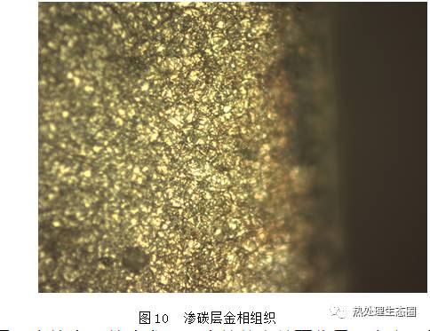 滲層中的金相組織:馬氏體級別、碳化物級別、殘留奧氏體級別都合格,如圖10所示。
