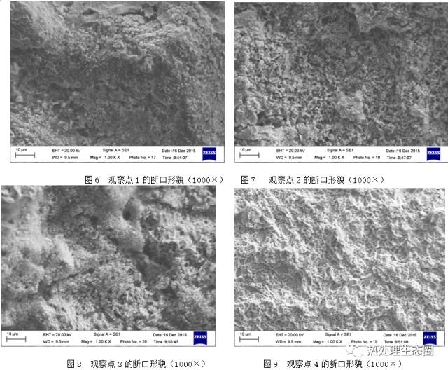 從圖6、圖7和圖8可見,裂紋斷口的氧化物清理后呈現(xiàn)一種疏松(豆腐渣形)的斷口形貌,與疲勞斷口和靜斷斷口有明顯的不同。