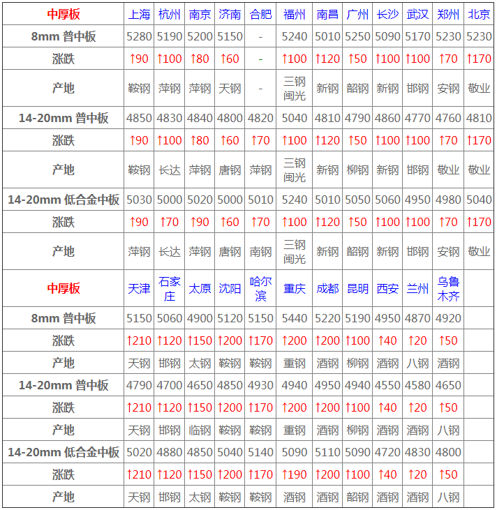 2月22日中厚板價(jià)格:延續(xù)上漲;