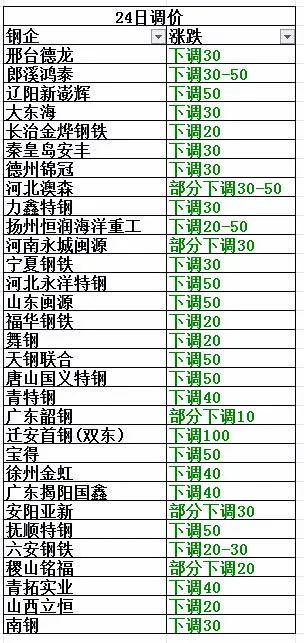 不完全統(tǒng)計(jì)今日39家鋼廠都在下調(diào),下調(diào)幅度10-100,市場成交整體偏弱,下游剛需采購為主。原料端近期走弱,對成材支撐略有下降,鋼廠建材報(bào)價(jià)有所松動,且集中在建材方面。預(yù)計(jì)明日鋼價(jià)穩(wěn)中有跌,建材弱于板材。